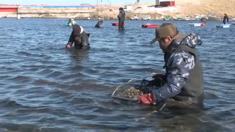 このアサリ漁は1970年から行われていて、冬場は閑散期となるコンブ漁業者の貴重な収入源となっています。