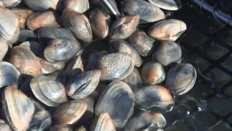 氷の下から引き上げられるアサリは、身が引き締まっていると好評です。