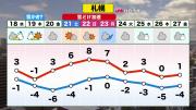 22日(日)の最高気温は、札幌・旭川で9℃、函館13℃です。