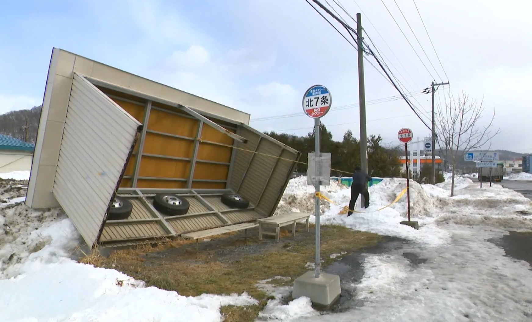 2月23日未明、北海道芦別市でバス停の待合所が倒れているのがみつかりました。強風で倒れたとみられています。