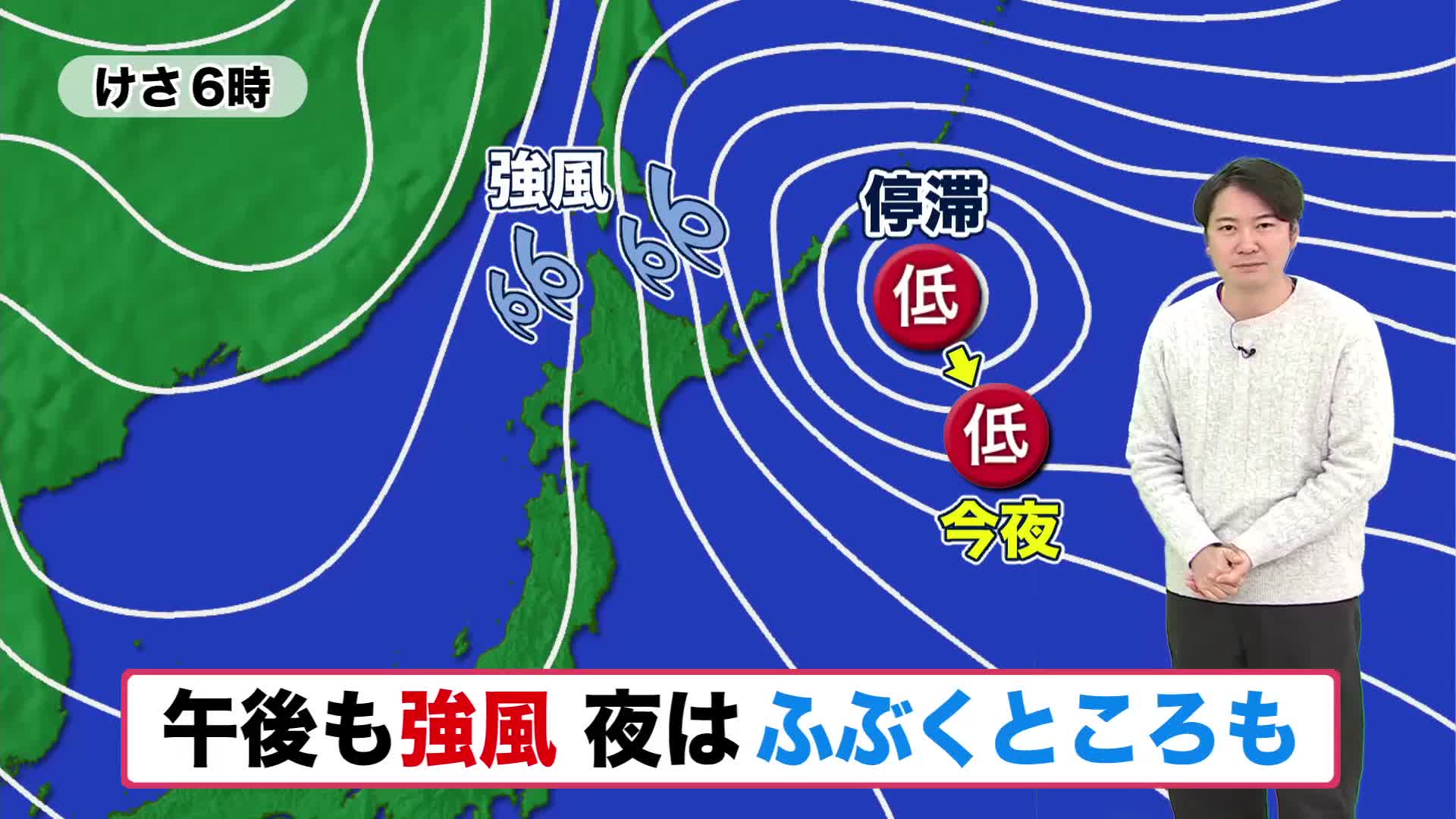 こんや2日(月)にかけては少し南へと移動し、風のピークは過ぎますが、