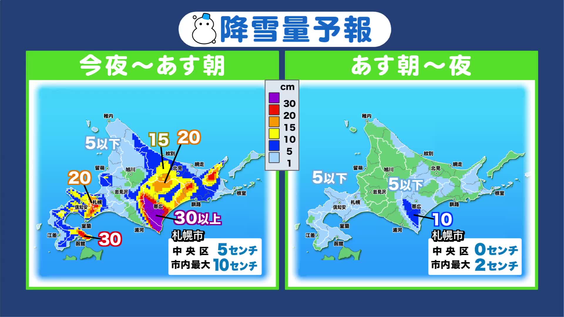 大雪のピークは越えますが、十勝地方は最大10センチです。