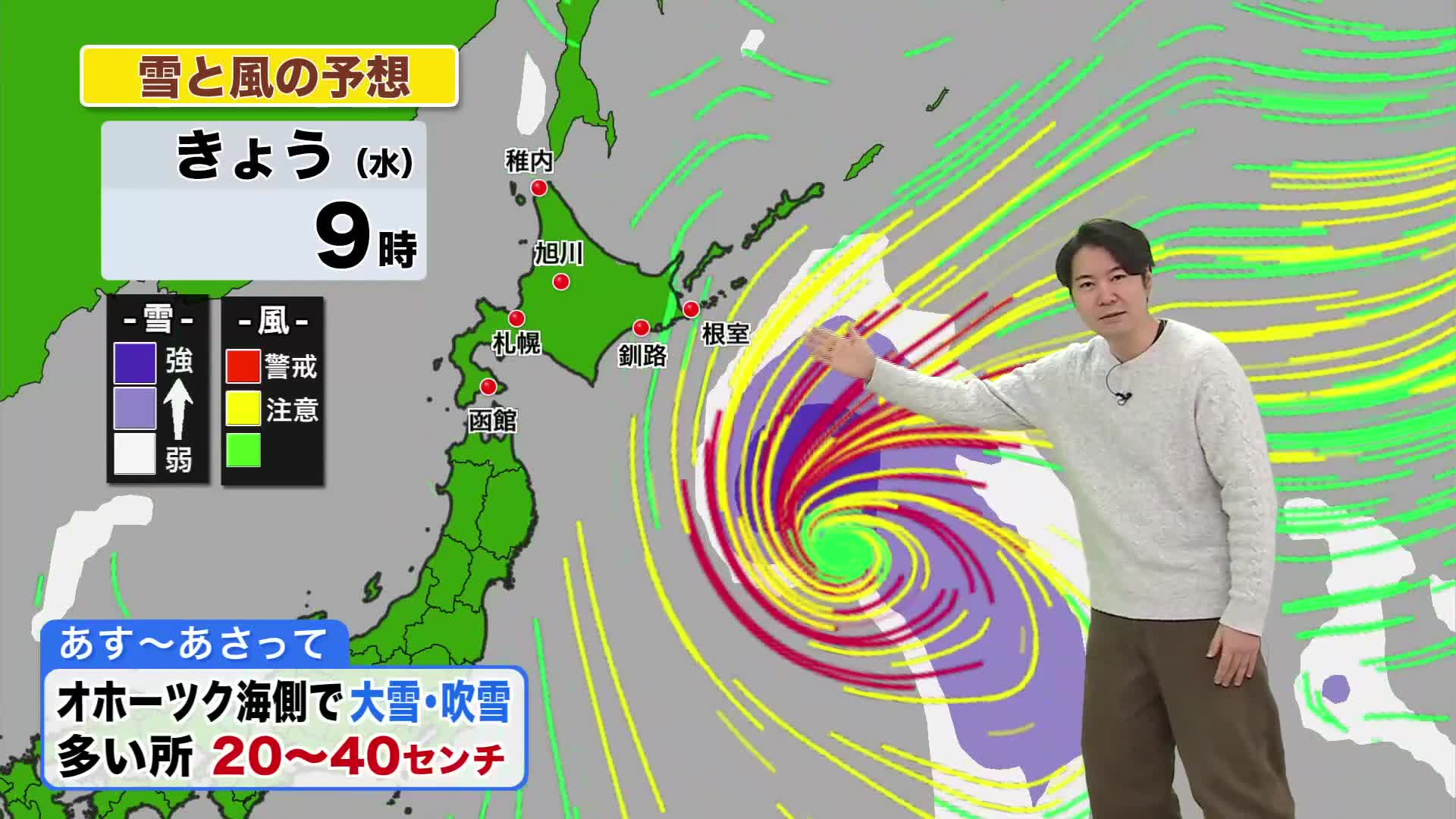 【北海道の天気 11日(水)】北海道の近くで低気圧が停滞…道東はあす・あさってと雪・風強まる!2日間で40センチの大雪の恐れも