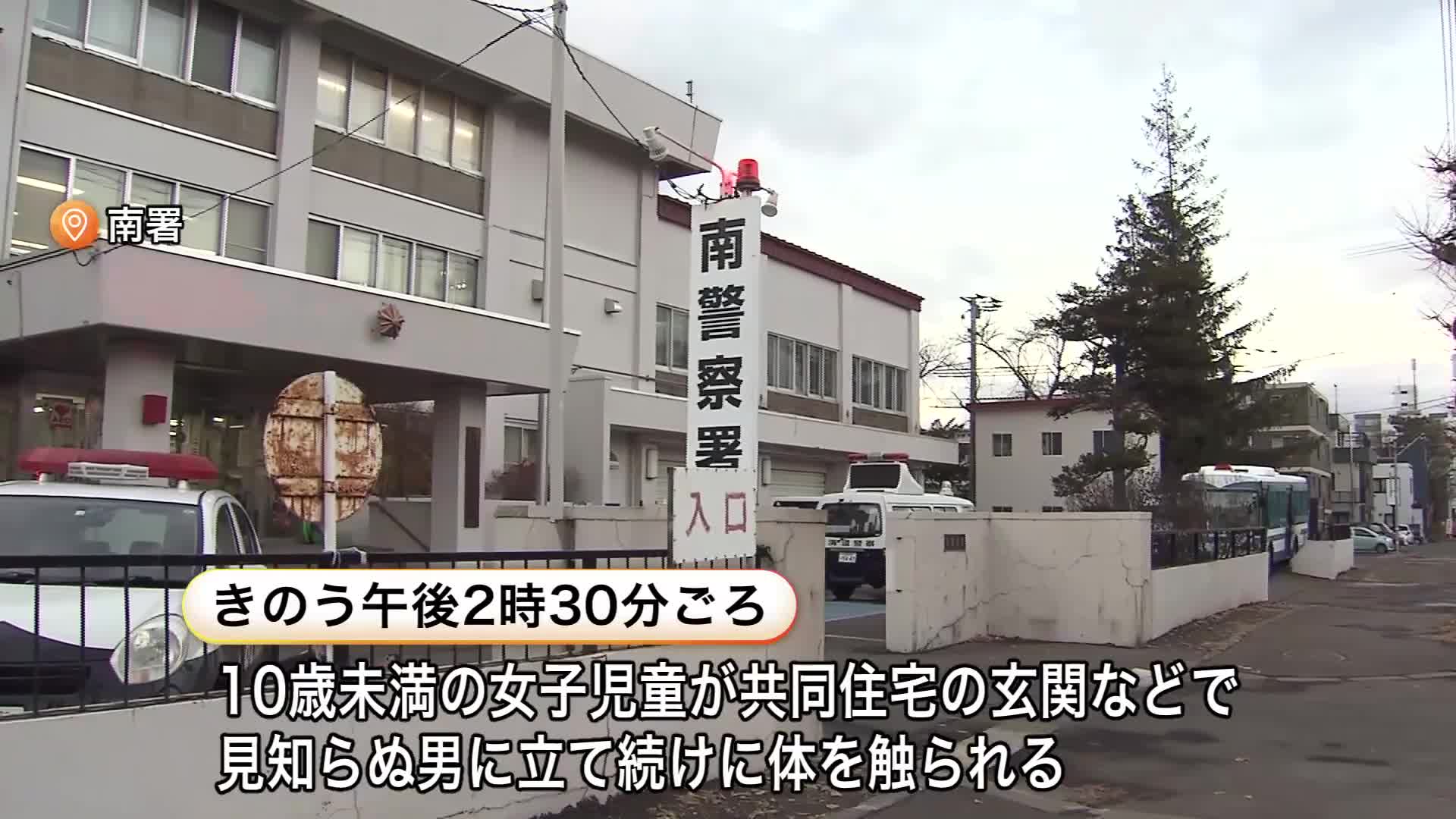 16日午後2時30分ごろ、札幌市南区の共同住宅の玄関や廊下などで10歳未満の小学生の女の子が見知らぬ男に後ろから立て続けに体を触られました。