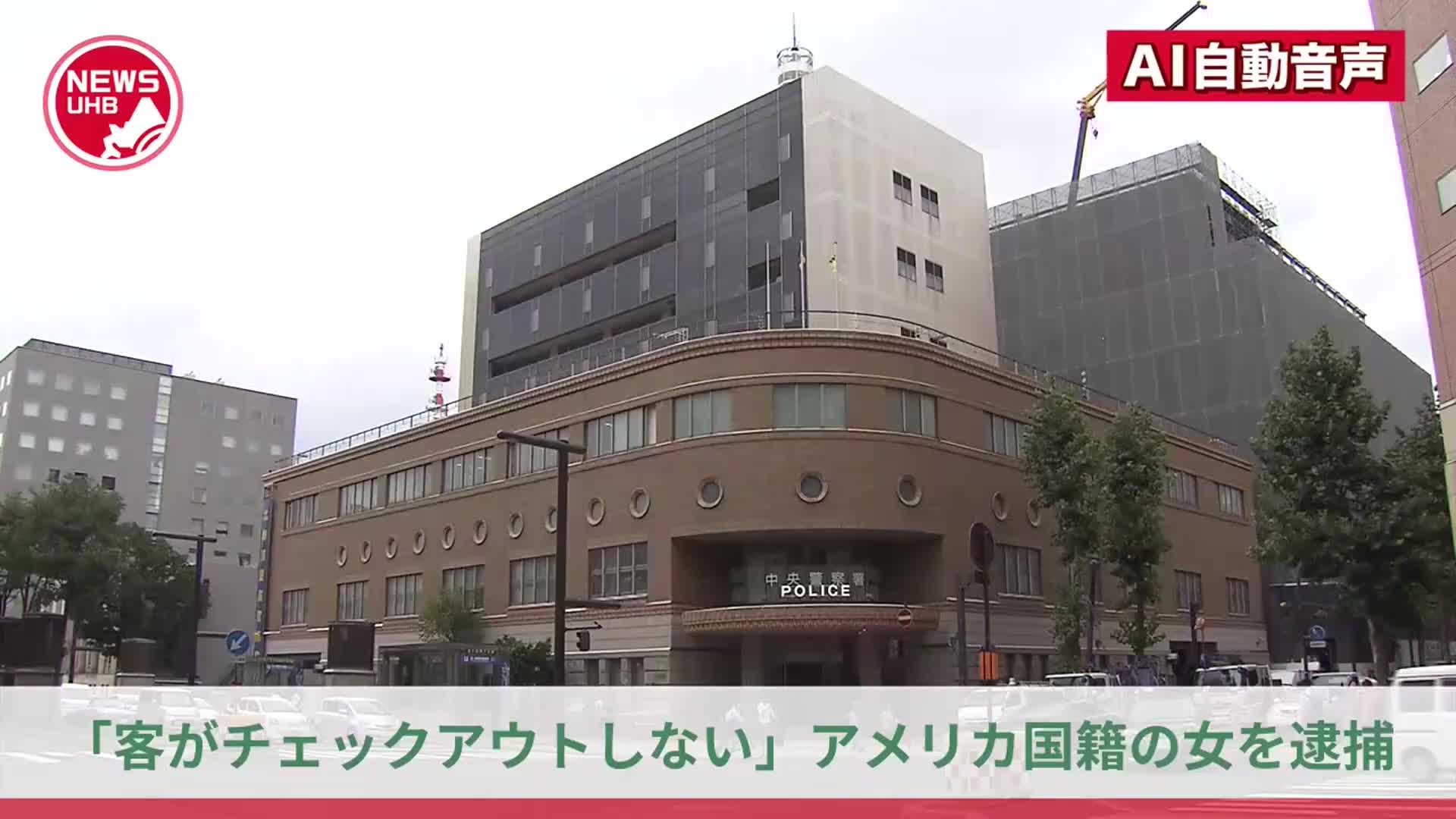 札幌中央区のホテルで、チェックアウト時間を過ぎても退去しなかったとして、アメリカ国籍で職業不詳の56歳の女が不退去の疑いで現行犯逮捕されました。