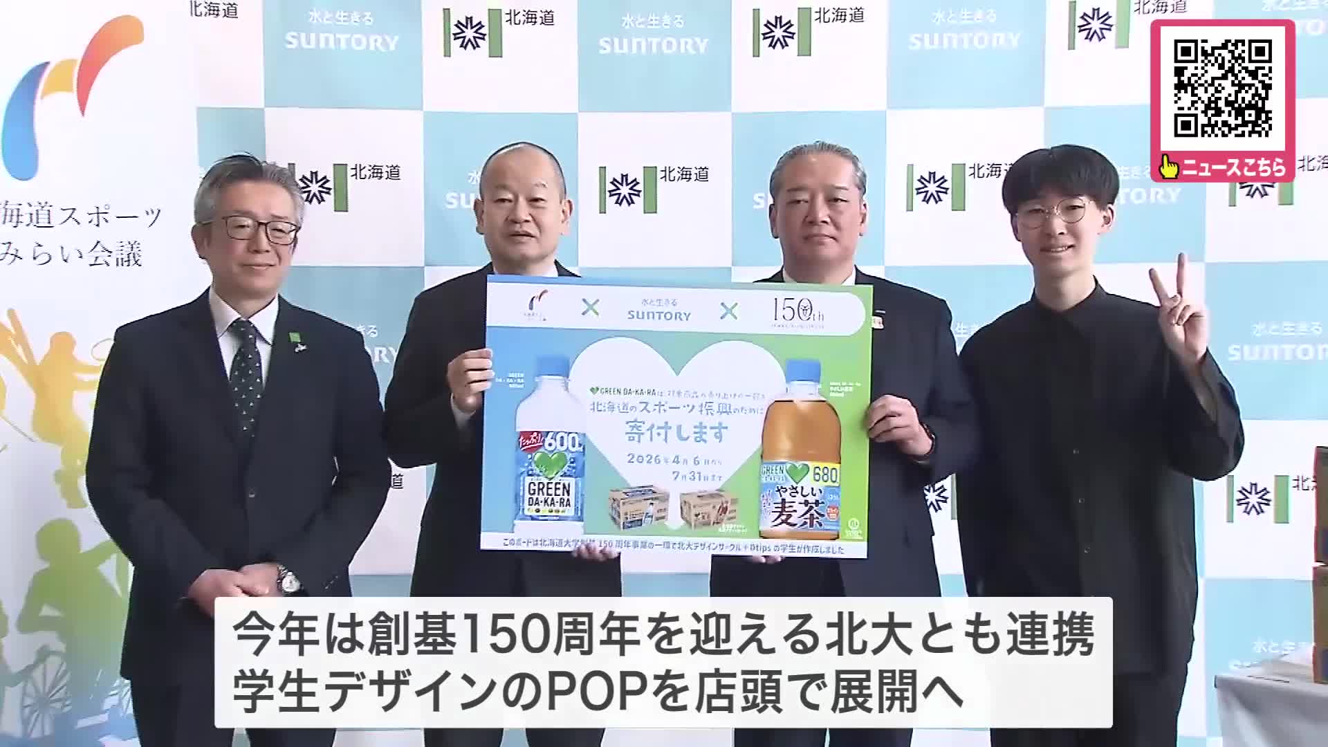これは8月に行われる北海道マラソン2026を応援する一環として、4月6日から7月までのサントリーの飲料商品の売り上げの一部を、北海道のスポーツ振興に役立てるため寄付する取り組みで、2025年は100万円が贈られました。