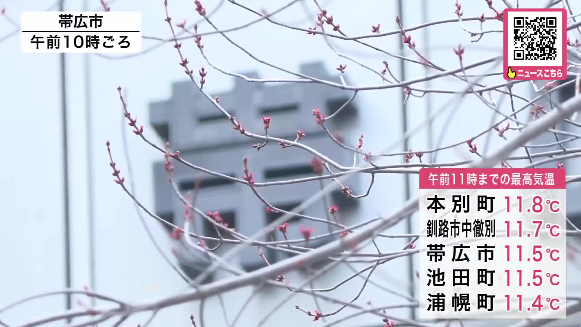 29日午前11時までの最高気温は、十勝の本別町で11.8℃、釧路市の中徹別や帯広市、池田町でも11℃を超えています。