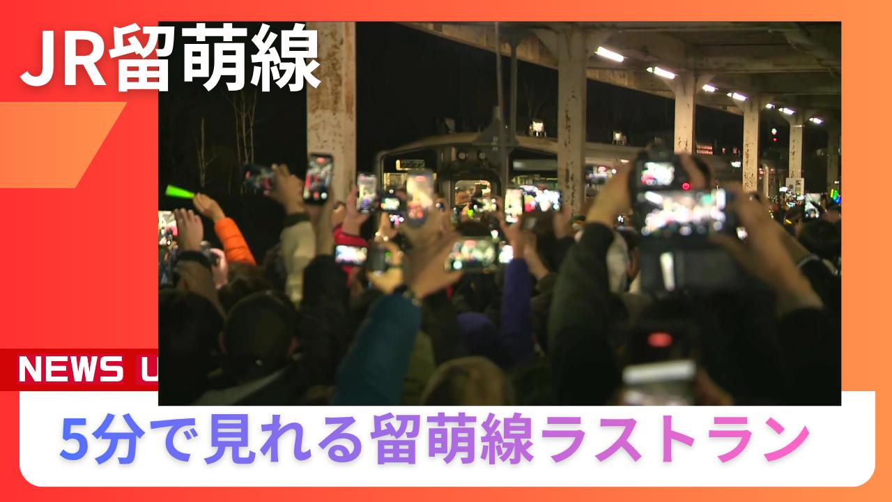 【5分間まるごと留萌線ラストラン】最終列車を見送ろうと多くの鉄道ファンや地元住民が集まるなか115年の歴史についに幕<JR北海道> 2026年3月31日22:30 UHB 北海道文化放送 JR留萌線は、地元住民らが見守る中、3月31日夜、115年余りの歴史に幕をおろしました。 北海道空知地方の石狩沼田駅から深川駅を結ぶJR留萌線。 最後の運行となった沿線の駅には、多くの鉄道ファンや地元住民が数多く詰めかけ、花火などのセレモニーが開かれました。 31日午後9時半ごろ、多くの乗客を乗せた最後の列車が、石狩沼田駅を出発し、JR留萌線は115年間の歴史に幕を閉じました。
