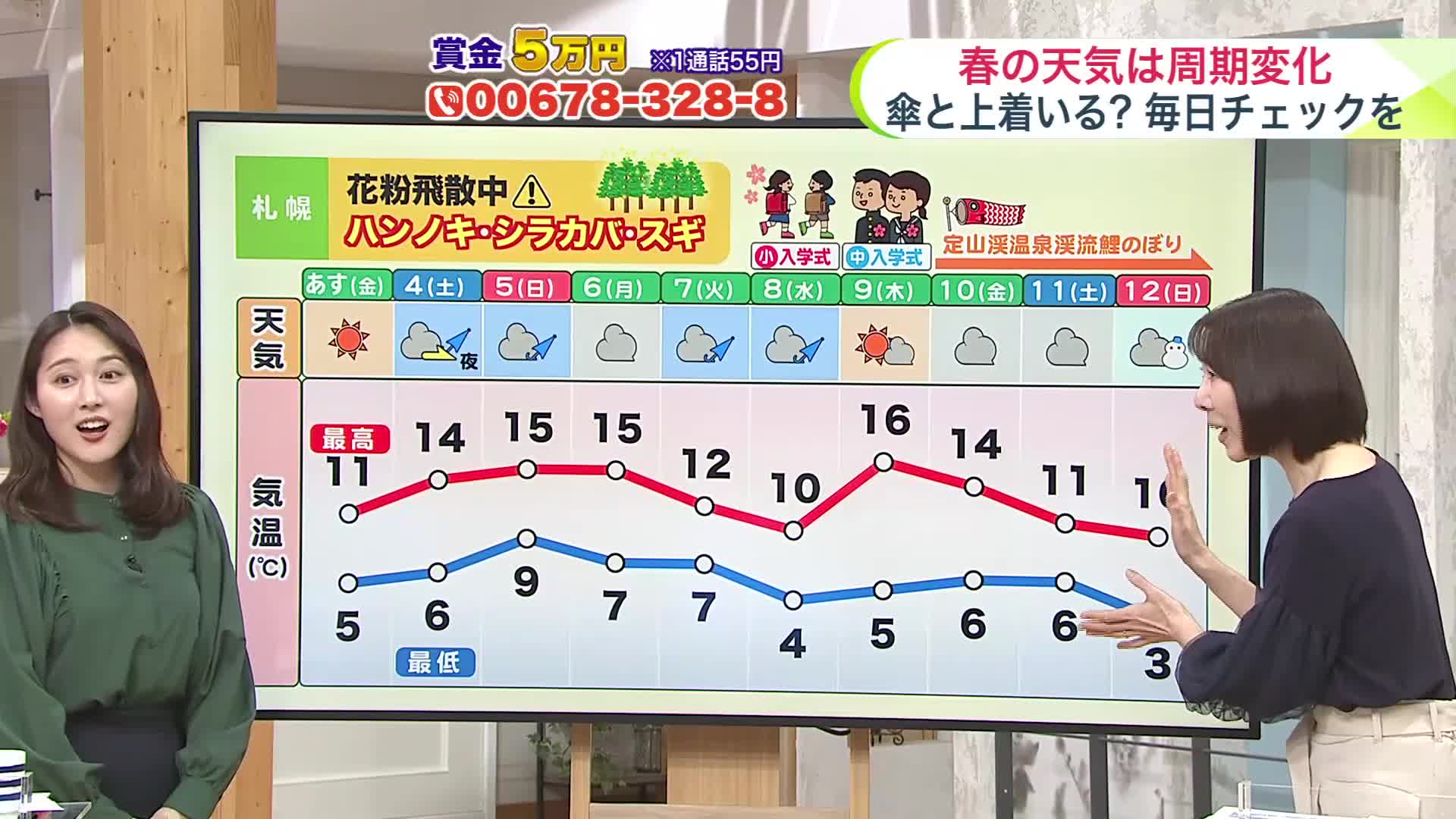 北海道【菅井さんの天気予報 2日(木)】4月になっても雪…今夜~あす朝にかけて道東の降雪量は最大10センチ!路面状況に気を付けて