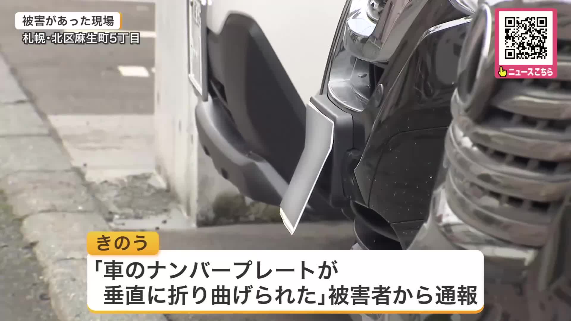 札幌市北区の住宅街で駐車場に止めた車のナンバープレートが折り曲げられる被害が相次ぎ、警察が捜査しています。