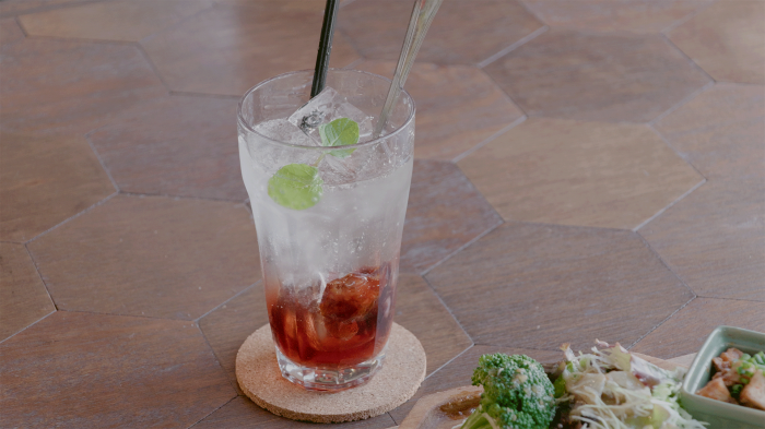 ・自家製フルーツ酵素ドリンク 650円 ソーダー・豊平オーチャード産プルーン
