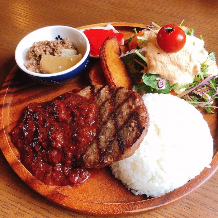 宮北牧場さんのハンバーグ"赤ワインソース" 1650円 ※ランチタイムメニュー (ライス・サラダ・スープ・ドリンク付き)