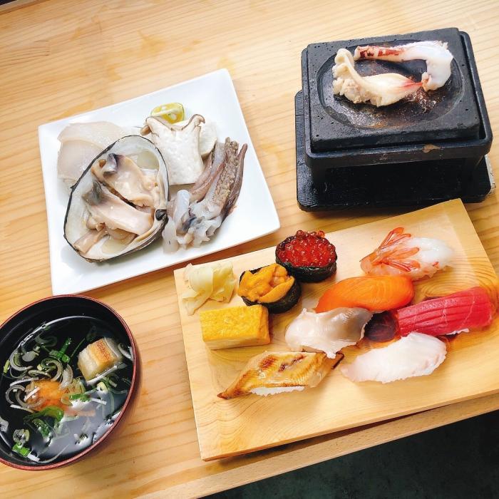 「ぷらっとすし」…魚介の石焼きと特選握り 2000円