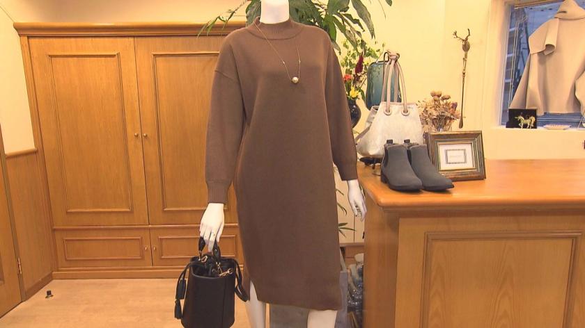 2WAY ダウンジャケット 2万9000円(+税)、ハイネックリブニット 4900円(+税)、プリーツヘムスカート 9800円(+税)