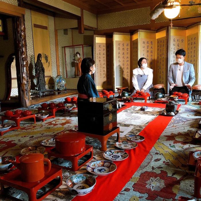 文化財保存協力費 1000円 ※要予約 (ガイド+抹茶、干菓子、ミニ甘酒付き) 甘酒しるこ(温) 500円 甘酒あふぉがーど 800円 ※1日限定10食