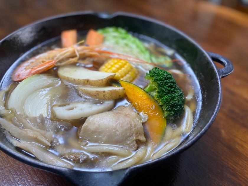 旬野菜と海老の鉄鍋うどん 1000円 ※季節限定