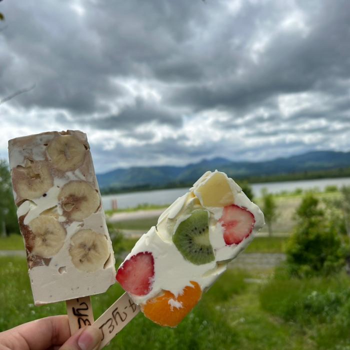 ソフトクリームバー(フルーツミックス・チョコバナナ) 各450円