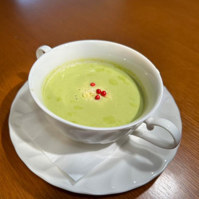 グリーンピースとパルメザンチーズのポタージュ 460円