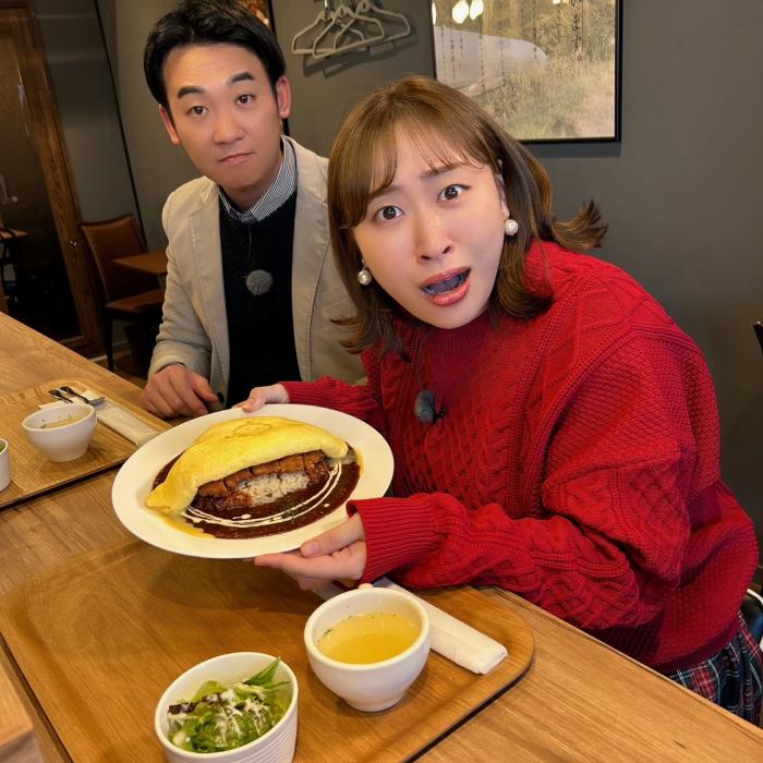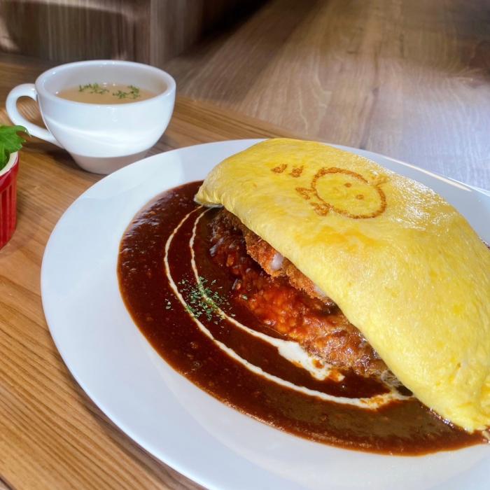 オムカツ(プレーンオムレツ、ガーリックライス、デミグラス) 1250円 ※サラダ・スープ付き