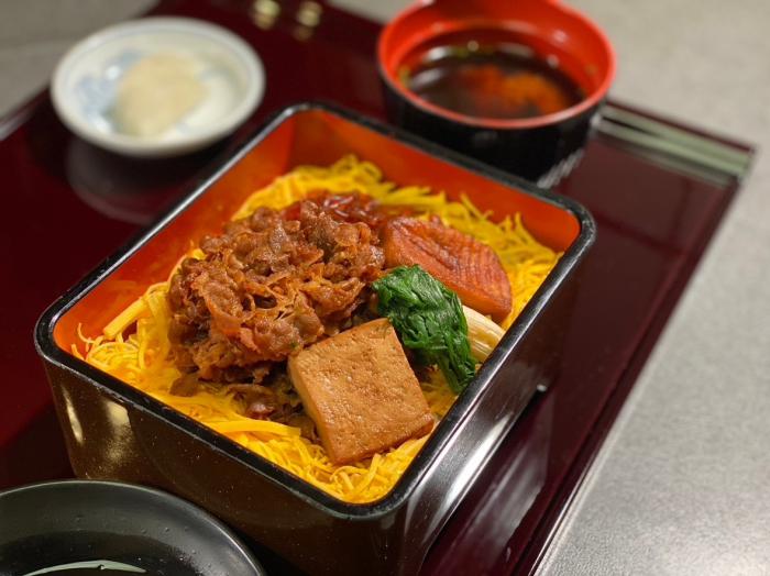 すきやき重盆(玉子・香の物・汁物付き) 1580円 ※食後にコーヒーサービス