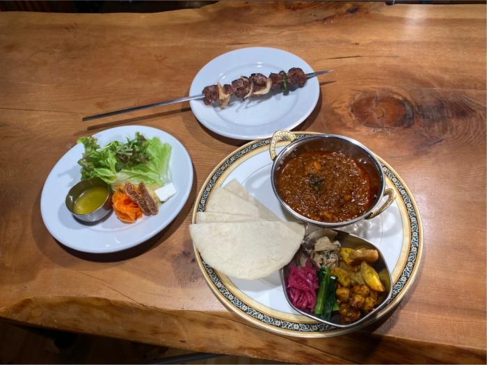 カレー1種 マトン付(炭火焼きケバブ) 2100円 ※サラダ・ごはん・副菜付