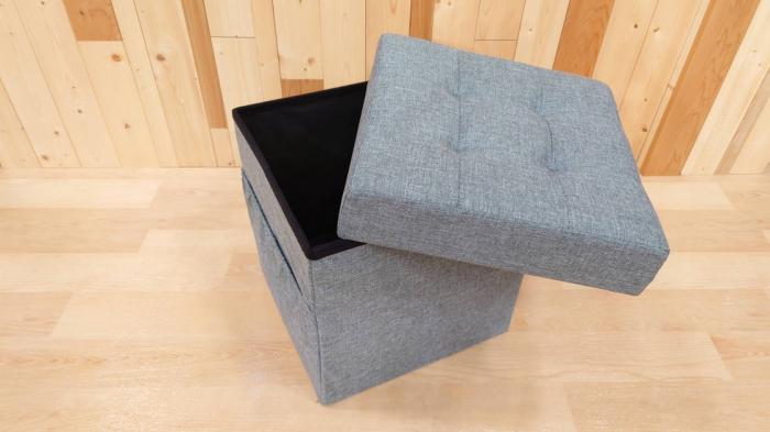 折りたたみができる収納ボックス。収納と椅子がニコイチになった2wayアイテム