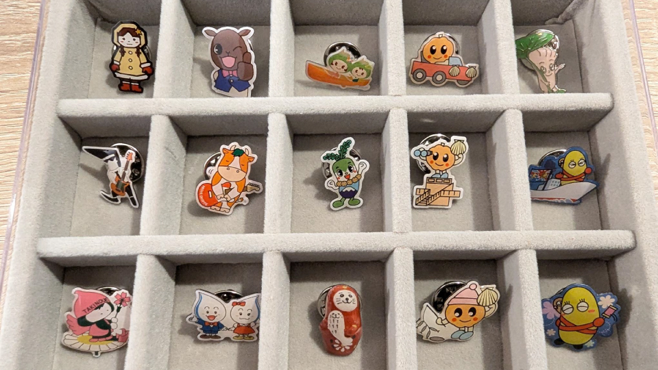 出張の時に買い集めている市町村ゆるキャラピンバッジ