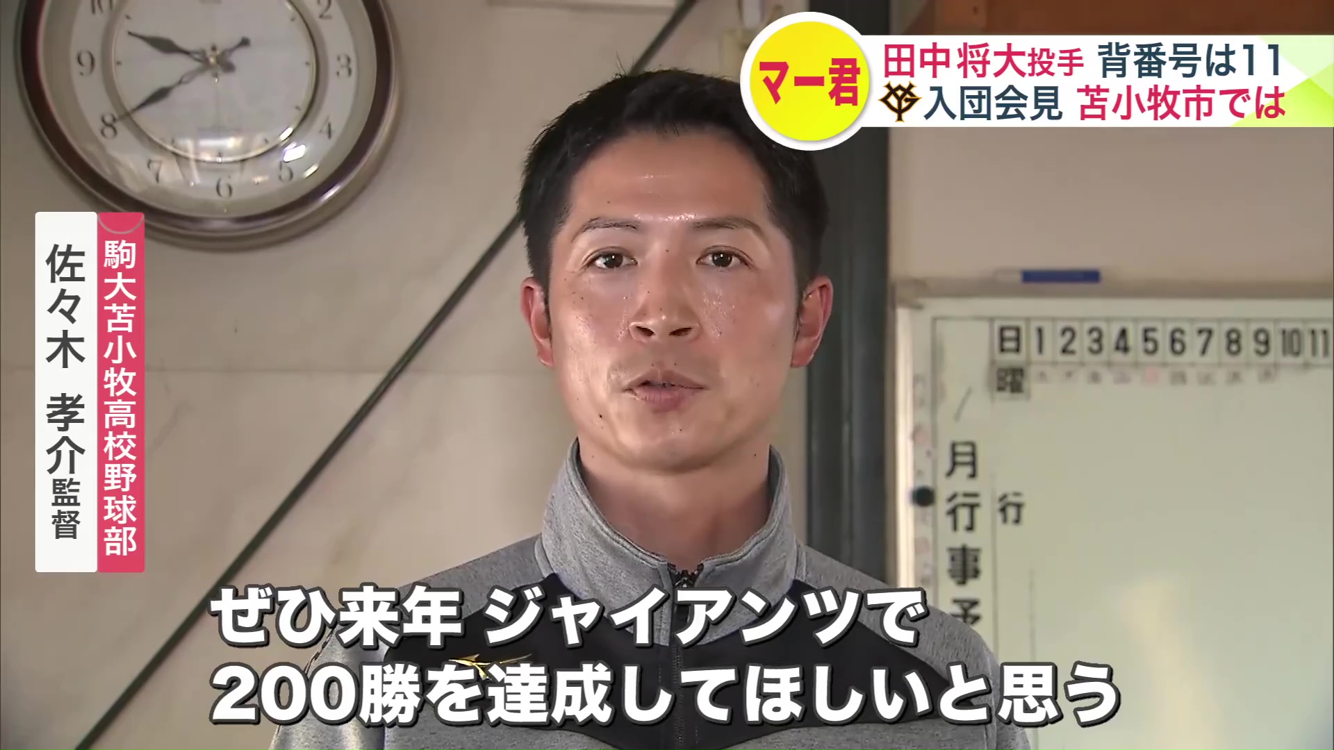 田中投手の2学年先輩にあたる、駒大苫小牧高校野球部の佐々木孝介監督は。