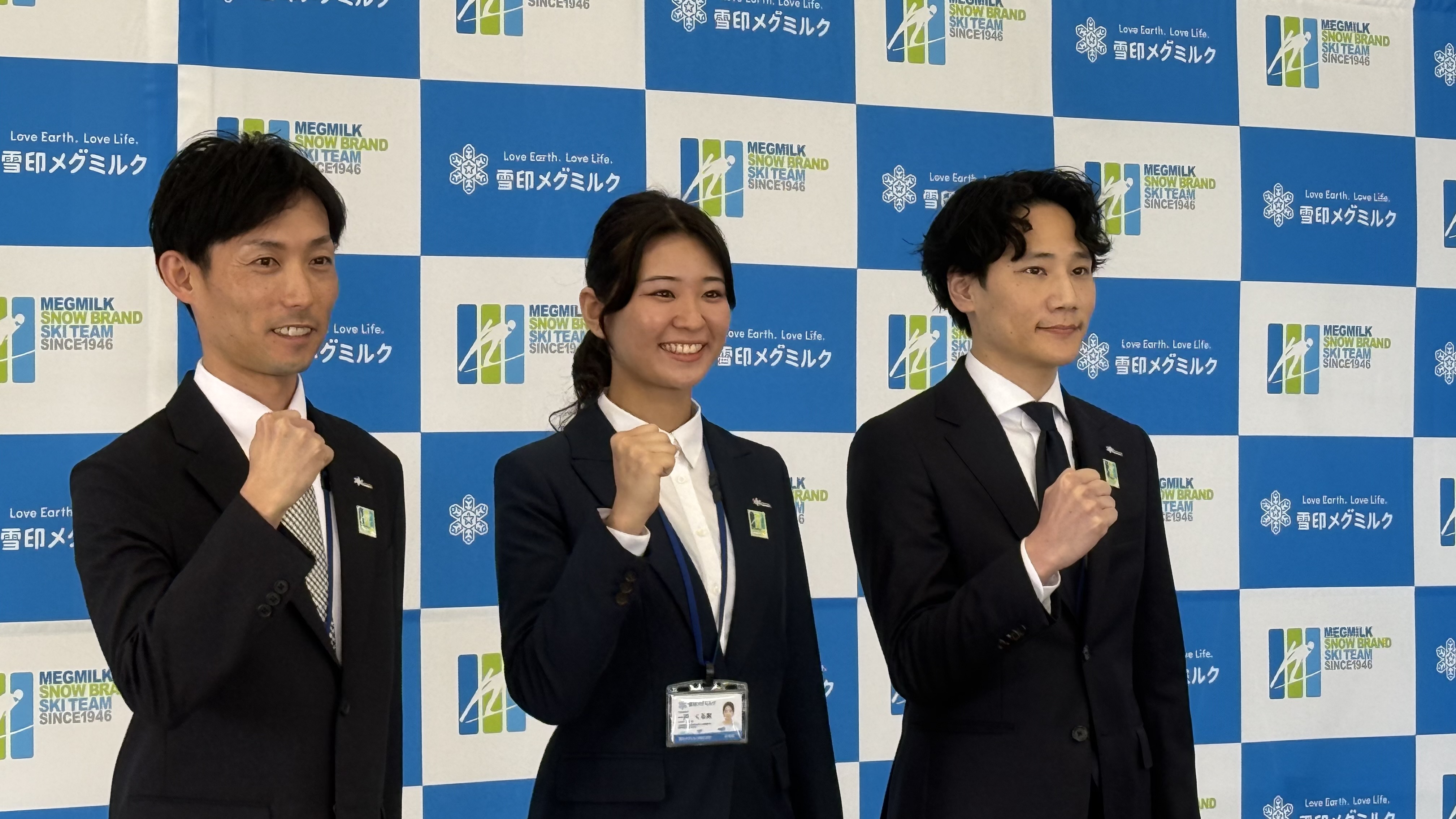 4月10日、雪印メグミルクスキー部が北海道札幌市内で2025-26シーズンの新体制会見を行いました。会見へ臨んだのは1946年の創部以来“初の女性ジャンパー”として加入した一戸くる実選手(20)、伊東大貴新監督(39)、原田侑武新コーチ(34)です。