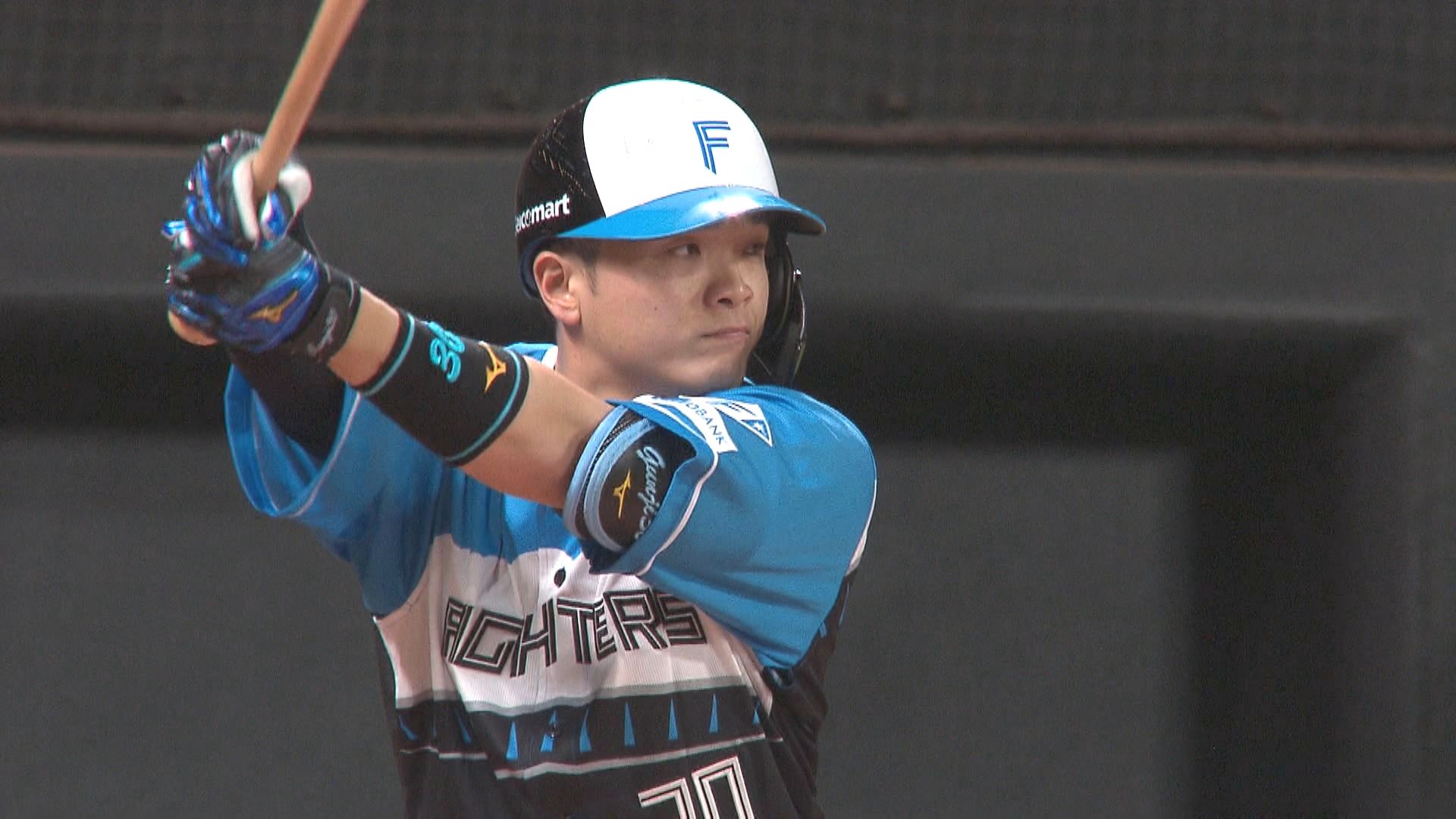 2回ウラに6番・郡司裕也(27)選手がカウント3ボール1ストライクから141キロのストレートを振りぬいた打球はグングン伸びレフトスタンドへ。第2号ソロホームランでファイターズが先制します。(F1-0E)しかし援護をもらった先発の伊藤大海は4回表、連打で3塁2塁のピンチを背負い3番・浅村栄斗(34)選手の犠牲フライで同点(F1-1E)試合を振り出しに戻されてしまいます。