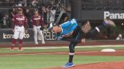 松本剛選手の1塁ベース駆け抜けにセーフの判定を出す一塁審判