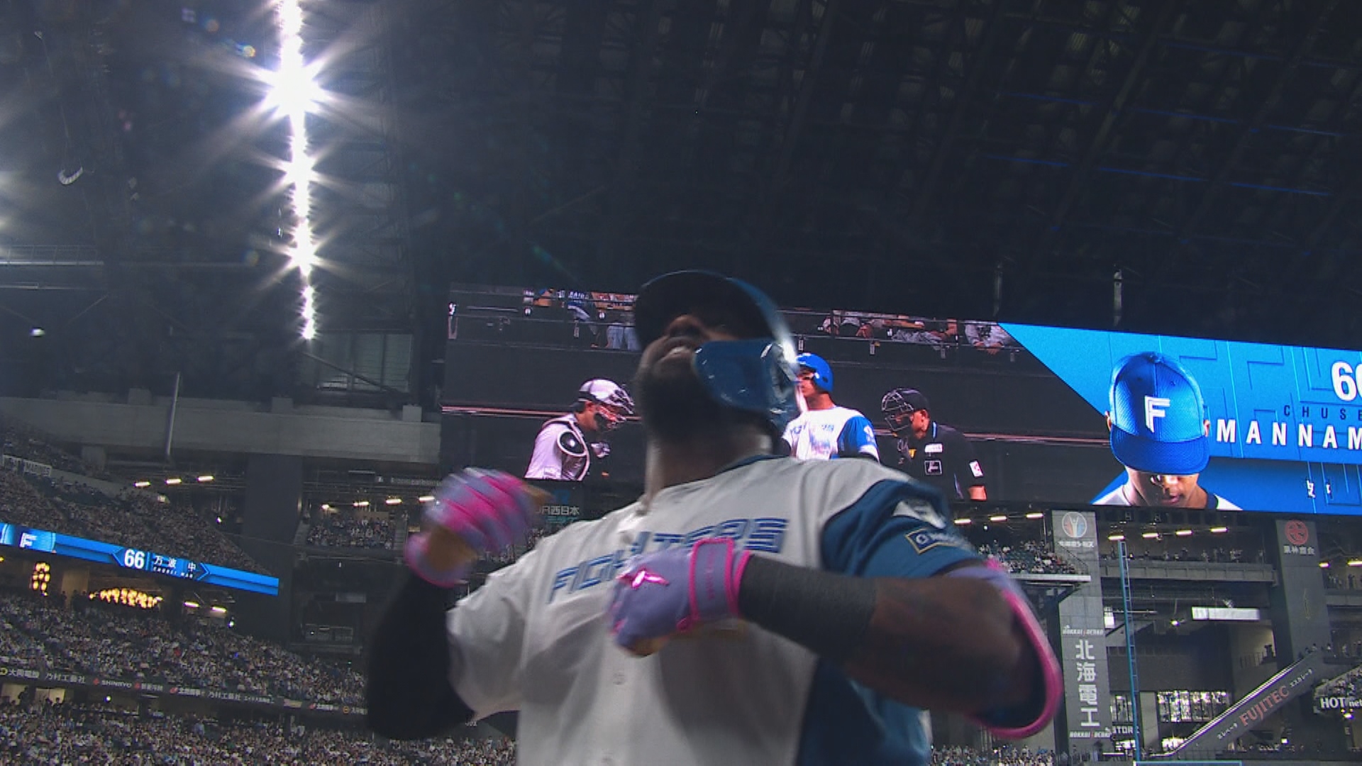 5月30日(金)にエスコンフィールドHOKKAIDOで行われた北海道日本ハムファイターズと千葉ロッテマリーンズの一戦。ここまでリーグトップタイの9本塁打を放っているレイエス選手(29)。この試合、凡打に三振と振るわず迎えた第3打席でした。ロッテ先発の小島和哉投手(28)が投じた高めの真っすぐを一閃、打球はファンの待つ左中間スタンドへと飛び込みました。これでレイエス選手はリーグ単独トップとなる2ケタ本塁打。ダイヤモンドを一周し、ベンチに戻るとファンへ向かって大興奮ドラミングを披露しました。