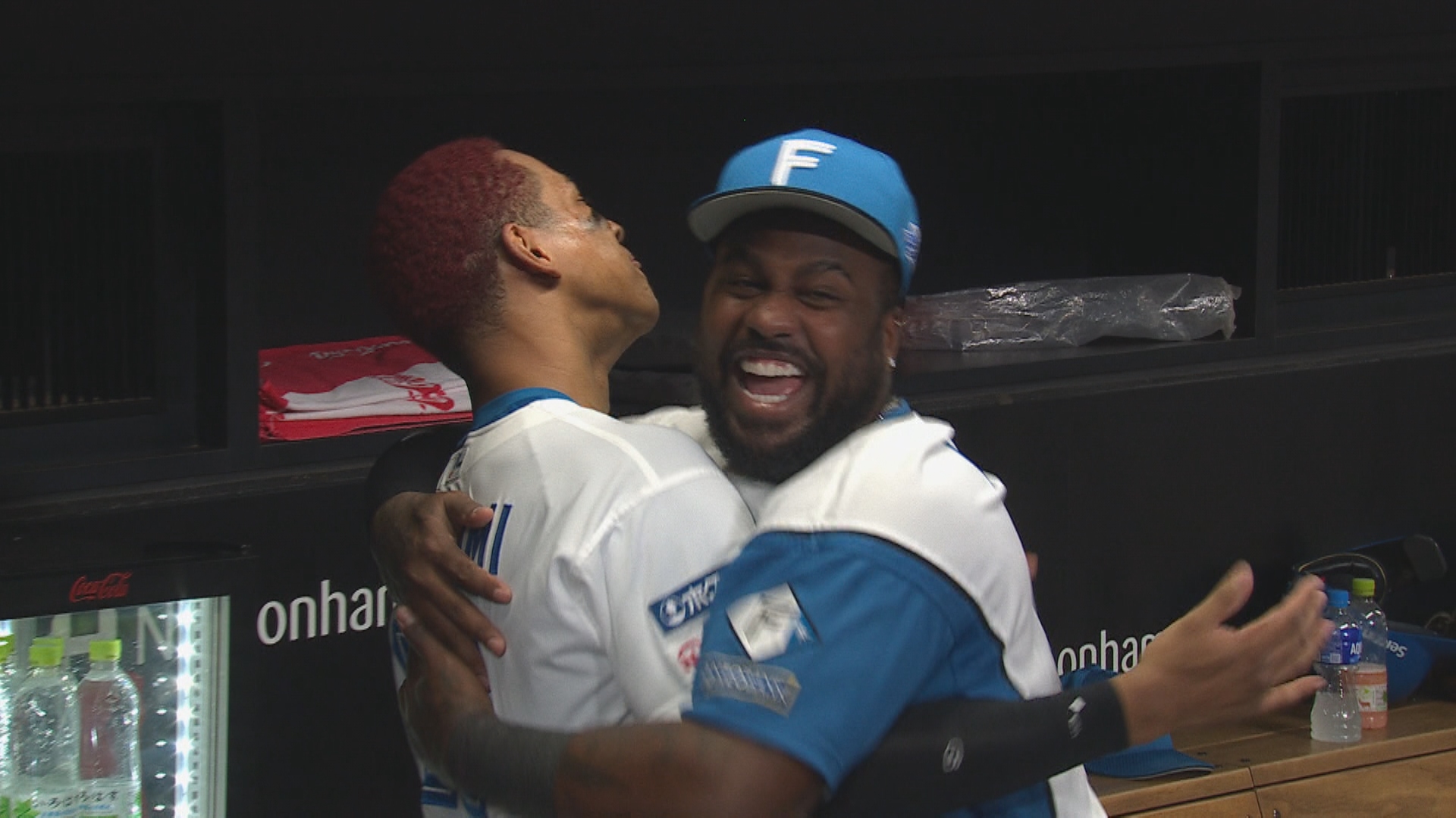 同じく試合前まで9本塁打とトップに並んでいた万波中正選手(25)。レイエス選手に一歩先を越された後の第4打席でした。相手の真っすぐを弾き返し、打球はライトのブルペンへ。負けじと10号ソロホームランを放ち、2人揃ってリーグトップに躍り出ました。万波選手がベンチに戻ると、レイエス選手がパワー溢れるハグとハイタッチで祝福。チームも4対1で快勝し、交流戦前最後のカード初戦をものにしました。