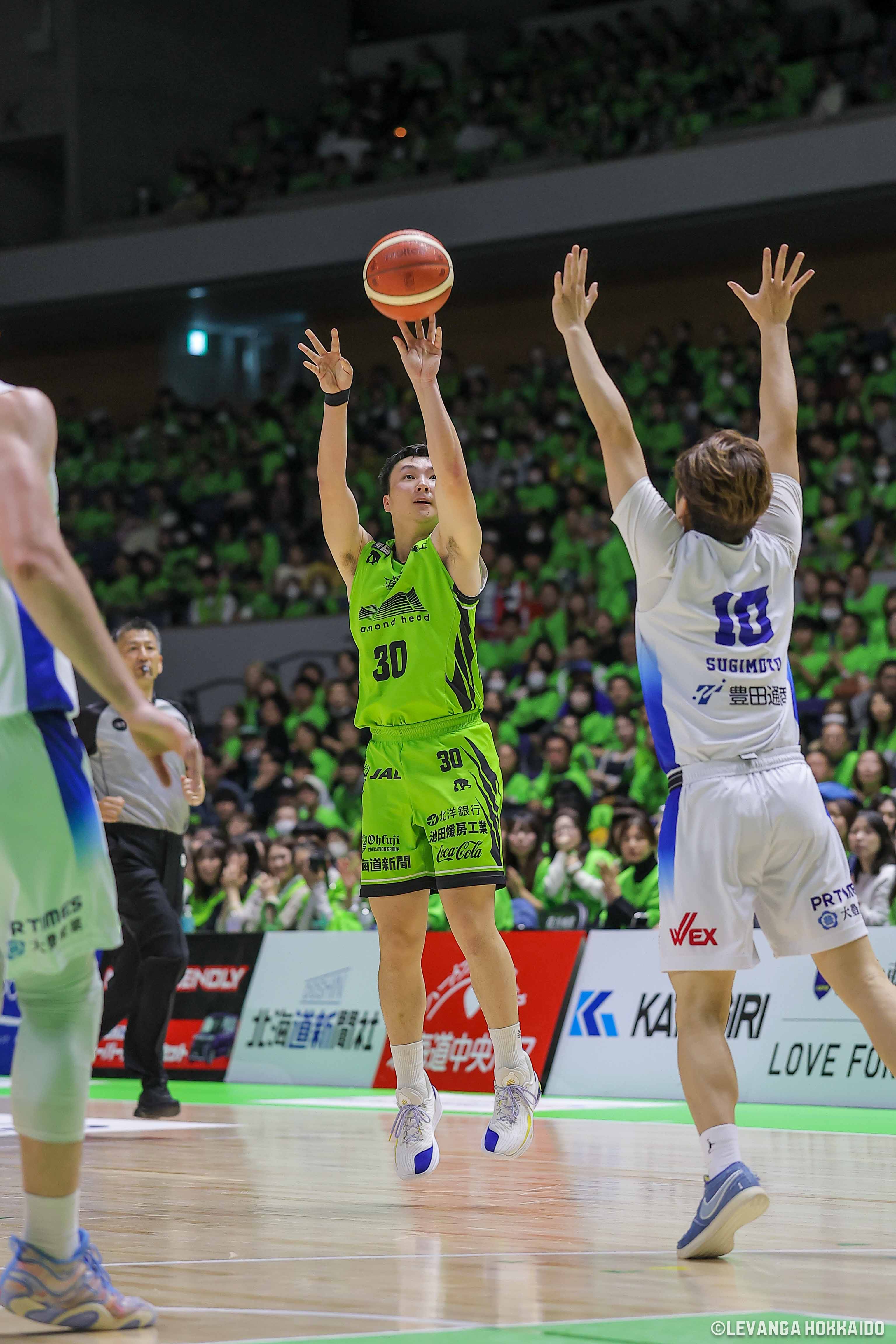 第3クォーターに入って、この日チーム最多18得点をあげたジョン・ハーラーのダンクなど、会場を沸かせる場面はあったものの、逆に点差を広げられる展開となりました。第4クォーターでも最後まで流れを引き戻すことができず、レバンガ北海道は74-91でホーム初戦を飾ることは出来ませんでした。厳しいマークに遭いながら、前半は12得点をあげますが、この日、放った3ポイントシュート5本中4本がリングに嫌われるなど苦戦を強いられました。