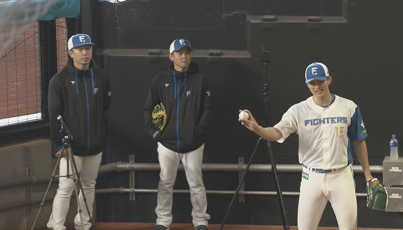 この日のブルペンでは、現役時代にシュートを武器に活躍した武田久投手コーチからのアドバイスを受けながら、シュートの練習をメインに50球以上を投げ込みました。その内容について問われると「思いっきり投げるだけ」と記者団の笑いを誘う場面もありました。しかし、「先発ピッチャーは基本エスコンで練習しているので、ピッチングもなかなか見てもらえる機会が少ないですけど、キャンプ中はつきっきりで見てもらえるのですごくいい時間」と、コーチ陣の指導を受けられるキャンプの重要性を語りました。