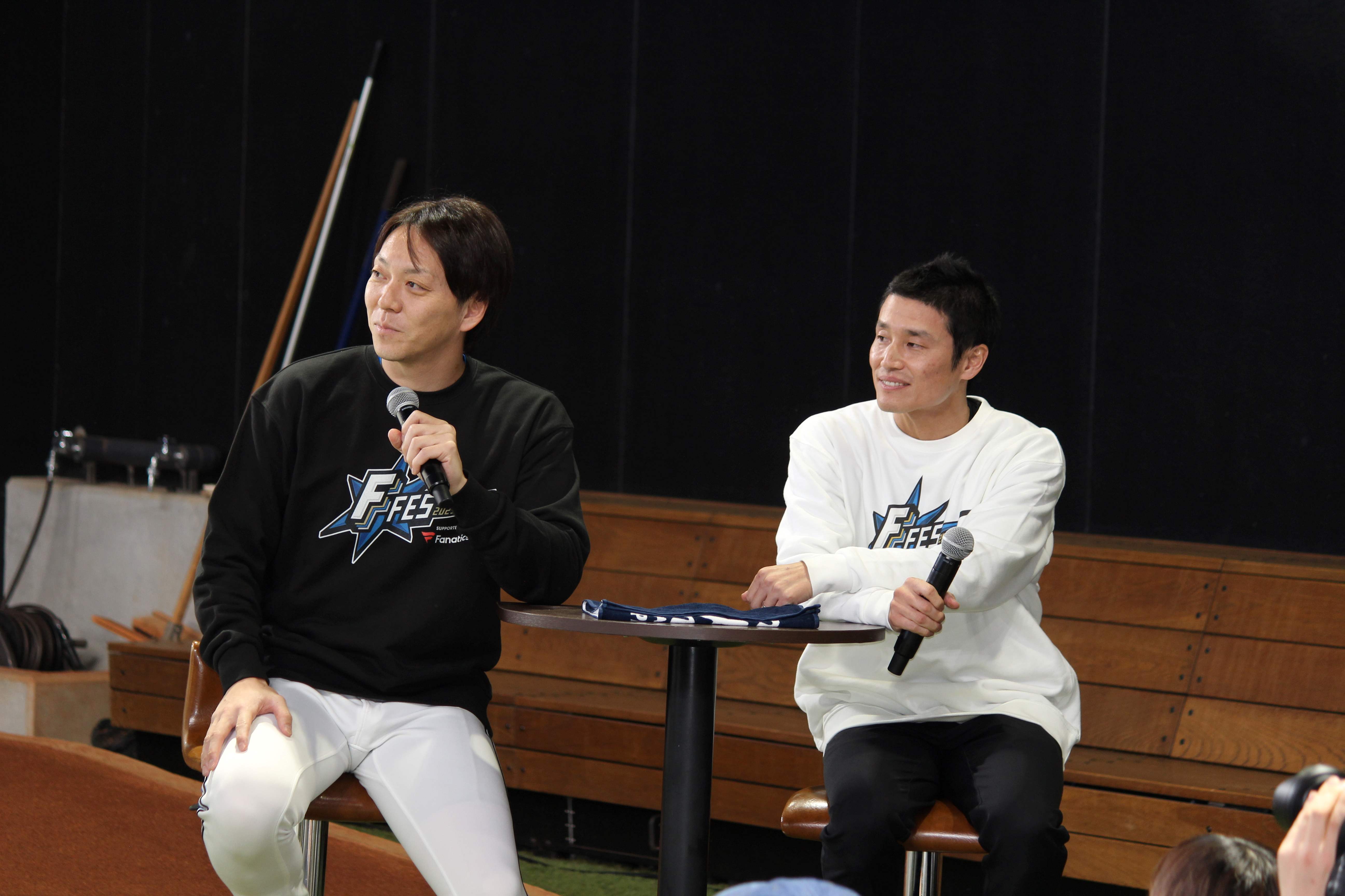 村田氏も「僕は2軍と1軍行ったり来たりでしたが、1軍に来たら一番最初に連絡くれる。飯行こうって。こう見えて優しい。トライアウトの日電話くれたの宮西だけです」と語りました。長きにわたりファイターズのブルペンを支え続けてきた宮西投手の偉大な記録を称える立像のお披露目会は、同期の絆、温かい人柄が伝わるファン交流イベントとなりました。