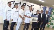 4日午前、苫小牧市役所を訪れたのは「北海道日本ハムファイターズ2軍施設を誘致する会」のメンバーで、苫小牧市の金沢市長に中間報告として約5万8000人分の署名を手渡しました。