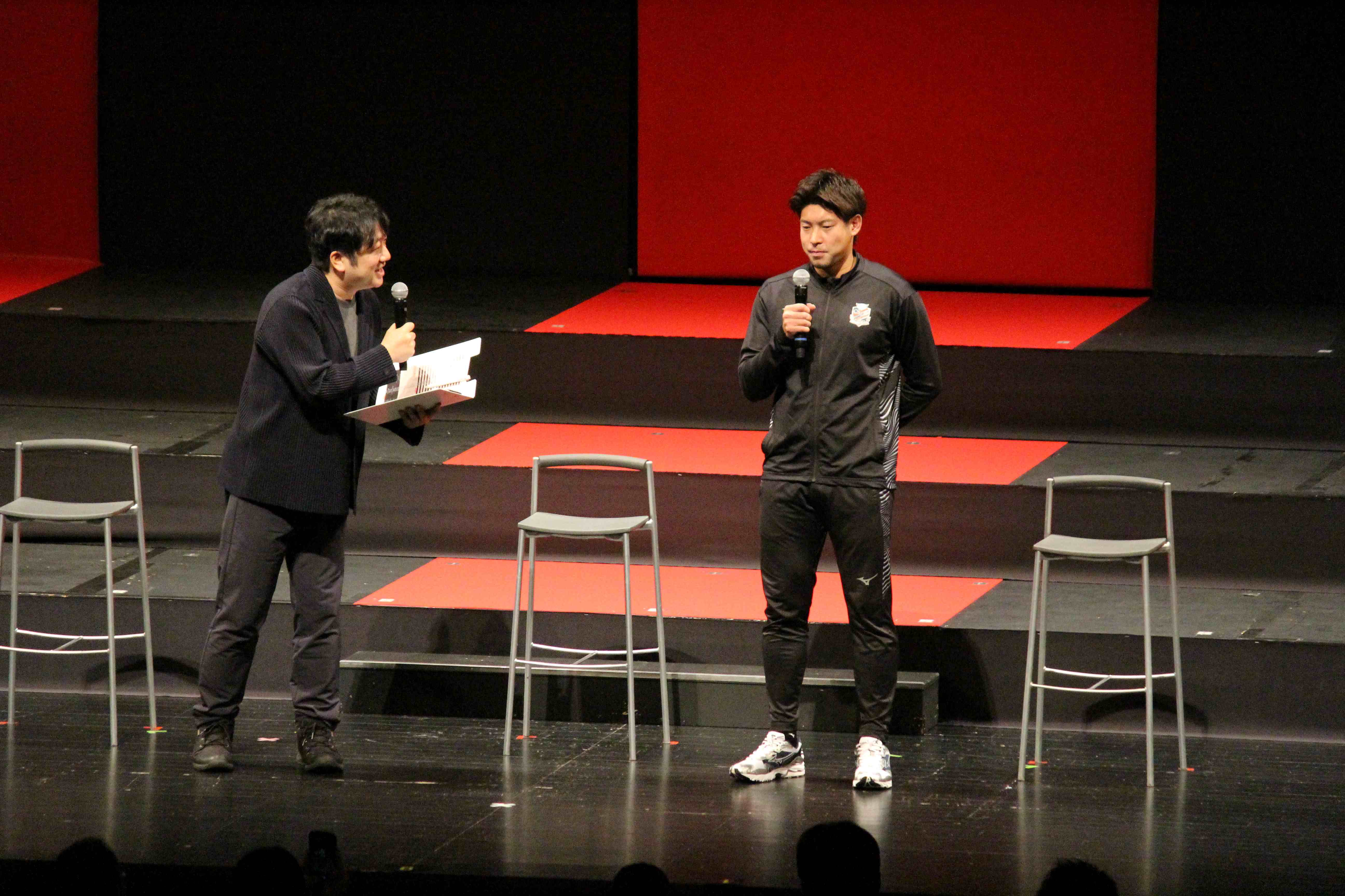 イベントに先立ち、石水創代表取締役社長は、クラブ30周年を迎えるにあたり、10年ぶりとなる函館開催への意向を表明。「北海道中に赤黒の輪を広げていきたい」と語りました。また、アカデミーのクラブハウスの建て替えに向けたクラウドファンディング開始を報告。今シーズンは河合竜二GM、川井健太監督のもと、戦える選手、コーチ、クラブスタッフが揃ったとし、「1.5シーズンを全力で戦い、クラブとして精一杯頑張ってまいります」と挨拶しました。