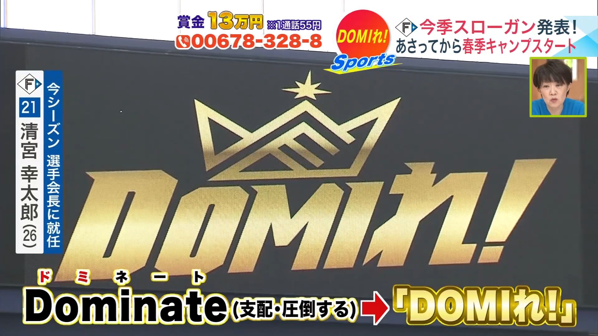 今季、チームをまとめる立場を託された清宮幸太郎選手は、練習中もひときわ大きな声を出して仲間を鼓舞しました。そして、自ら発案した新スローガン「DOMIれ!(ドミれ)」に込めた思いを次のように明かしました。