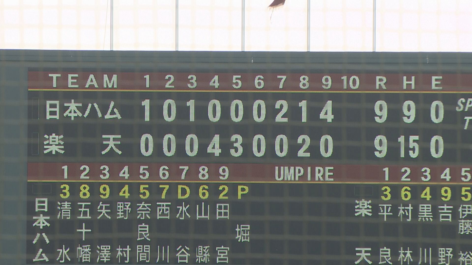 2月15日楽天VS日本ハム スコアボード