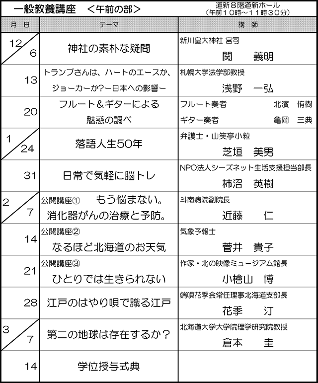 終了した一般教養講座(平成28年12月~平成29年3月)