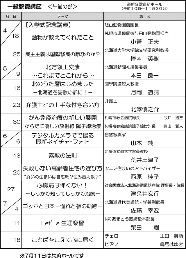 終了した一般教養講座(平成29年4月~7月)