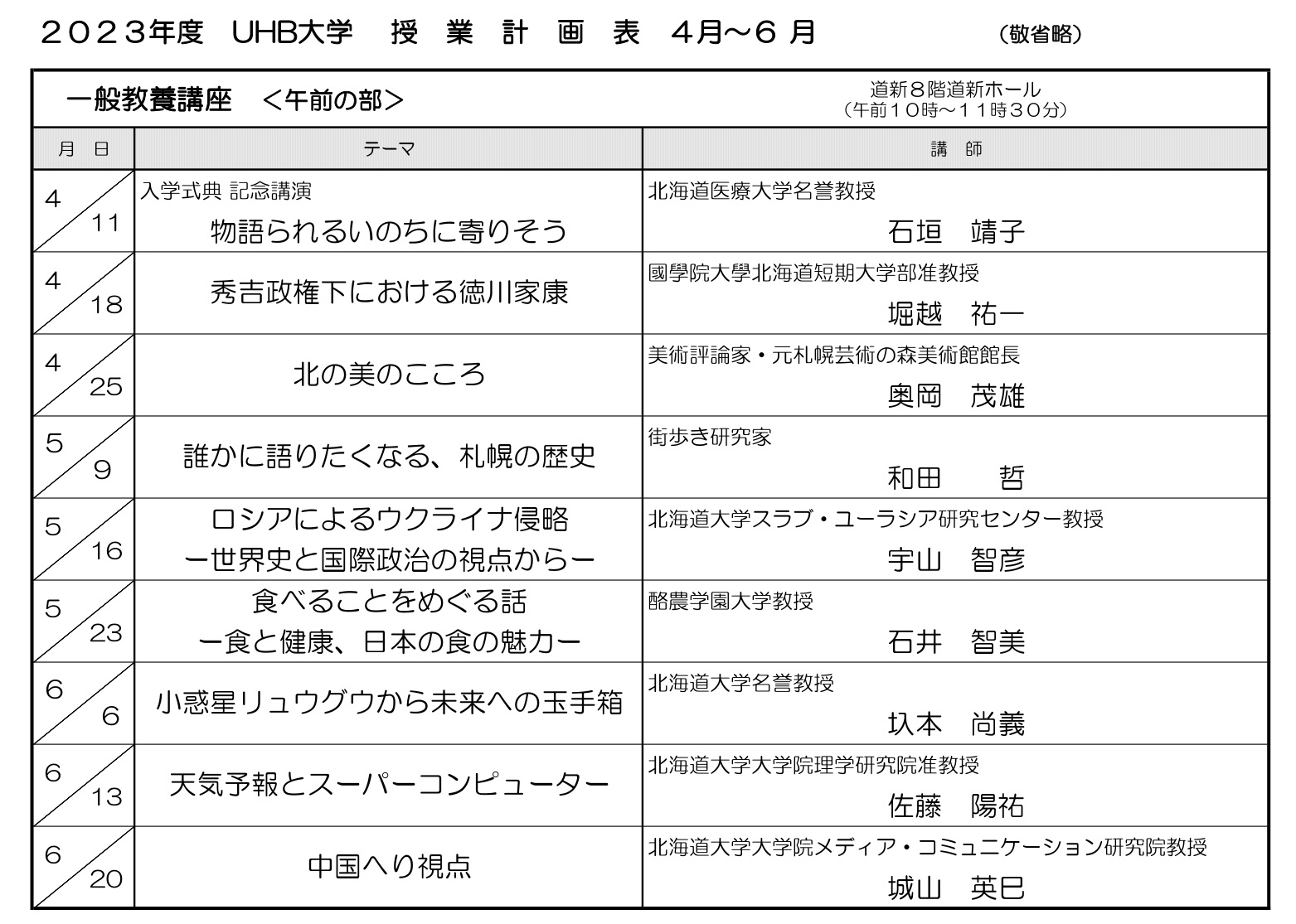 終了した一般教養講座(令和5年4月~令和5年6月)