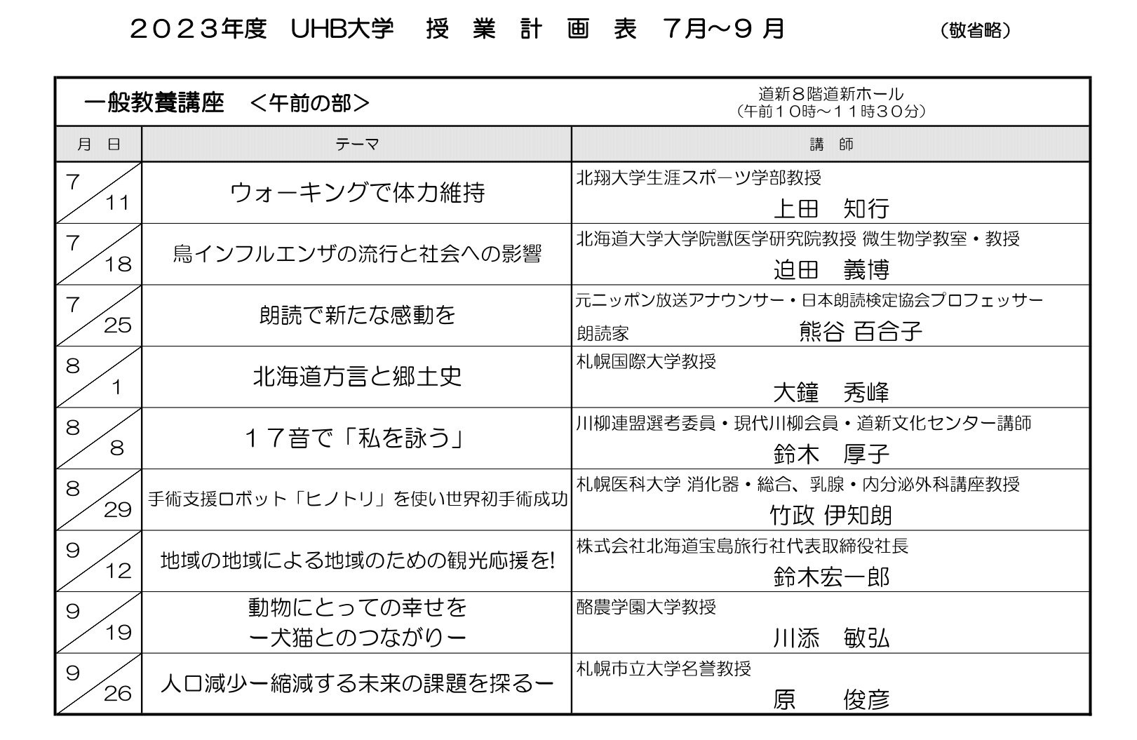 終了した一般教養講座(令和5年7月~令和5年9月)