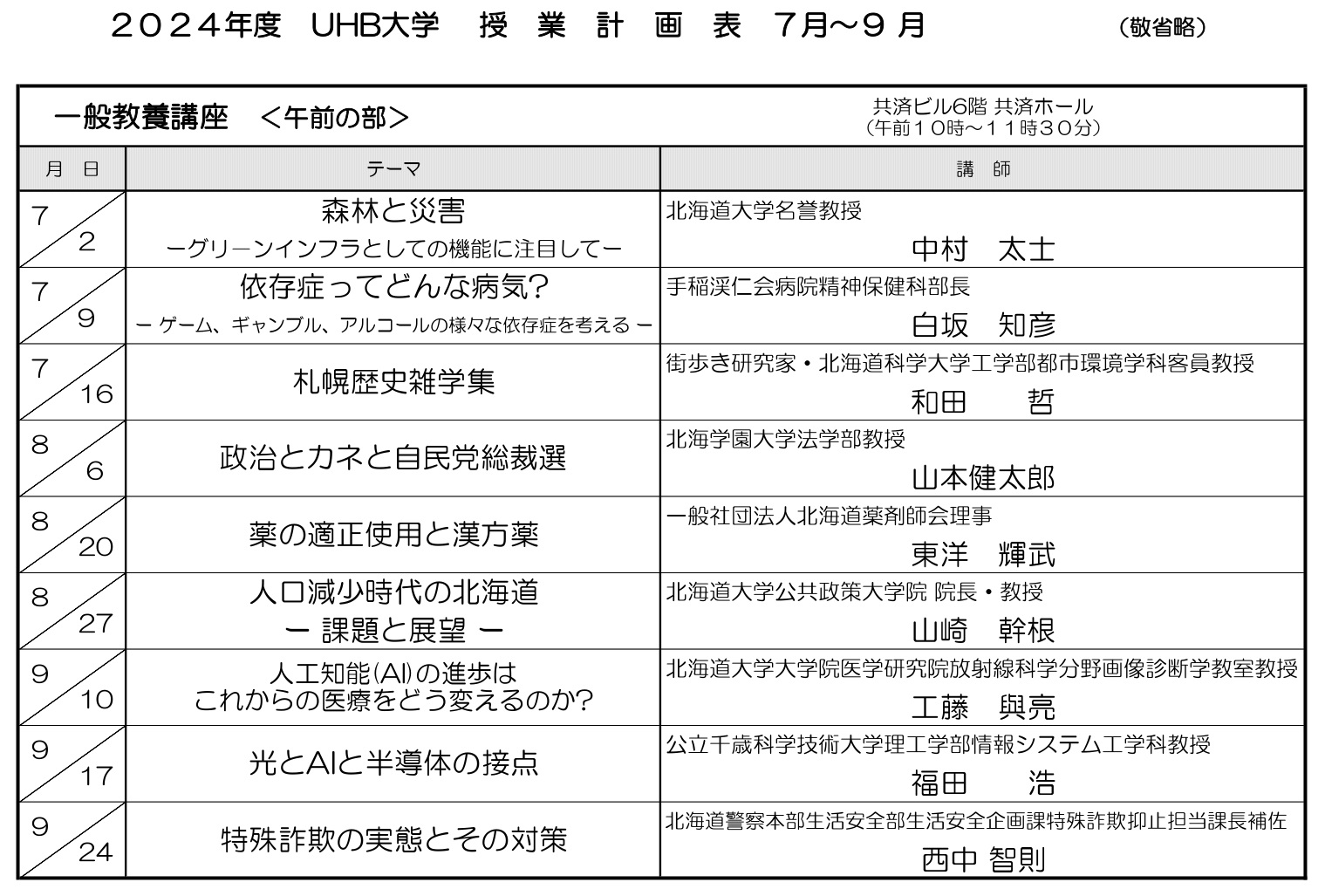終了した一般教養講座(令和6年7月~令和6年9月)
