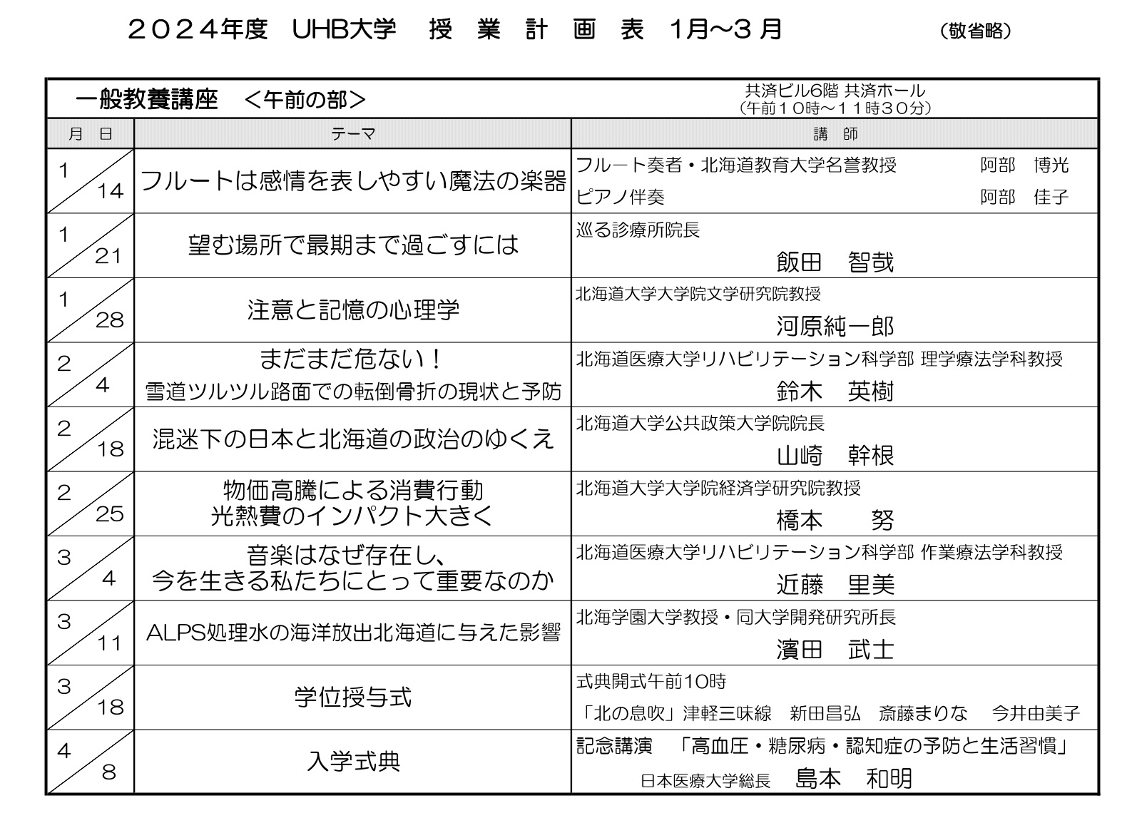 終了した一般教養講座(令和7年1月~令和7年3月)