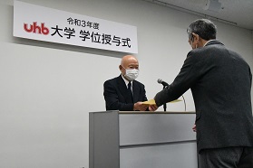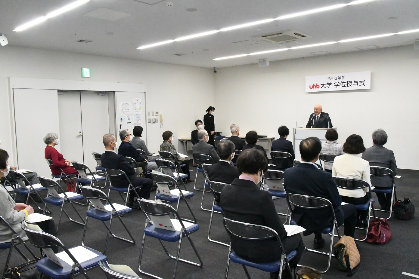 UHB大学は4年卒業生20人(31期生)の他、卒業後も生涯学習を続けてきた修業生26人、それに皆勤賞精勤賞5人合わせて51人に証書が授与される。